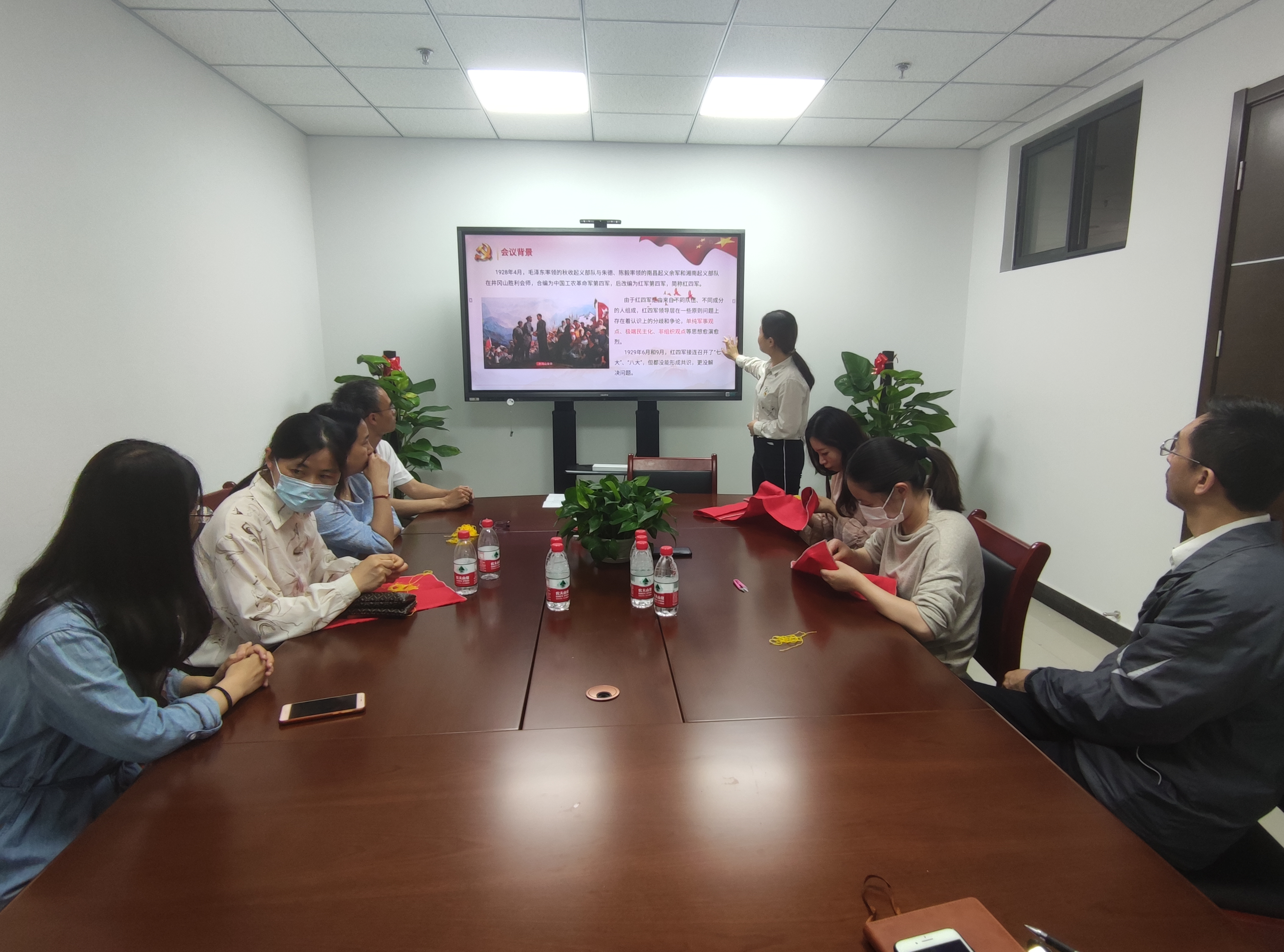 爱情岛 团委书记宋辉斐给老师们分享了党史小故事——“古田会议”,她从古田会议召开的背景、会议主要成果和历史意义等方面进行了介绍,同时对比了1929年召开的古田会议和2014年召开的“新古田会议”,并得出结论:古田会议永放光芒,古田军号永远嘹亮,人民军队已经开启了强军兴军新征程,向着实现中华民族伟大复兴的中国梦阔步迈进!