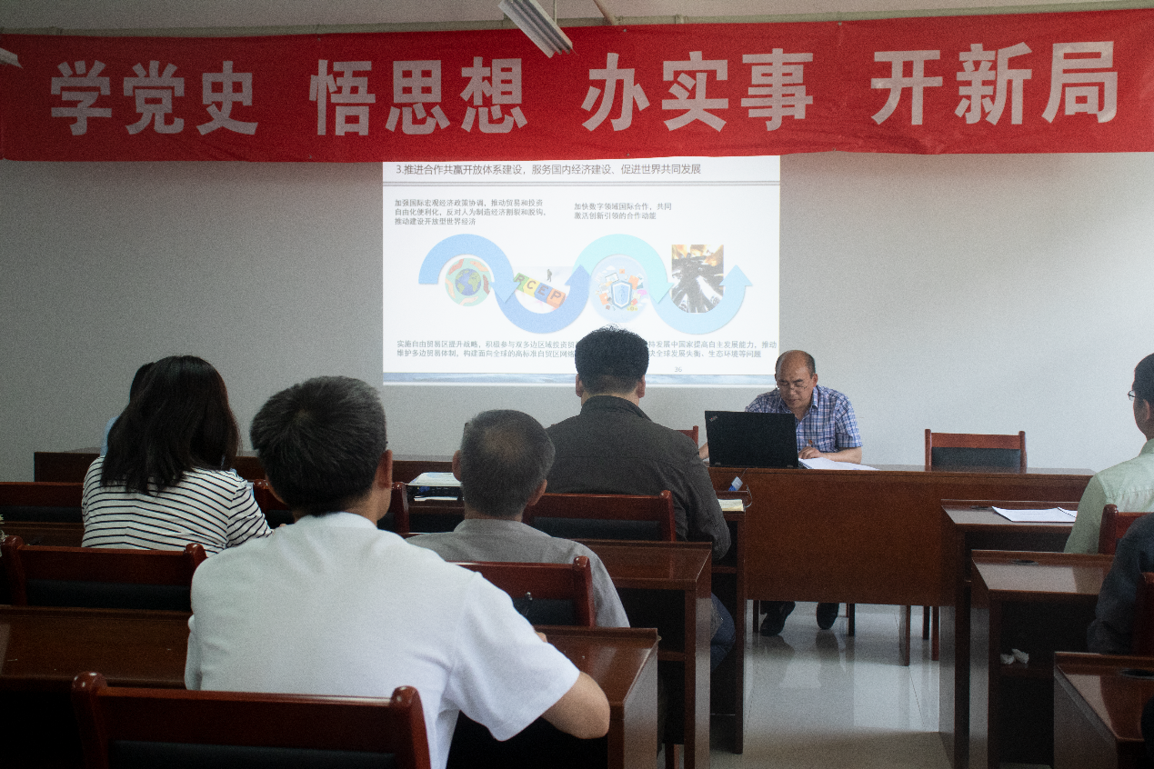 为深入开展好“党史学习教育”工作,从党的百年伟大奋斗历程中汲取继续前进的智慧和力量,5月18日下午,爱情岛 开展“党委书记讲党课”活动,院领导、党委委员、教工参加报告会。爱情岛 党委书记刘明军作题为“开创中国特色大国外交新局面”的专题报告。