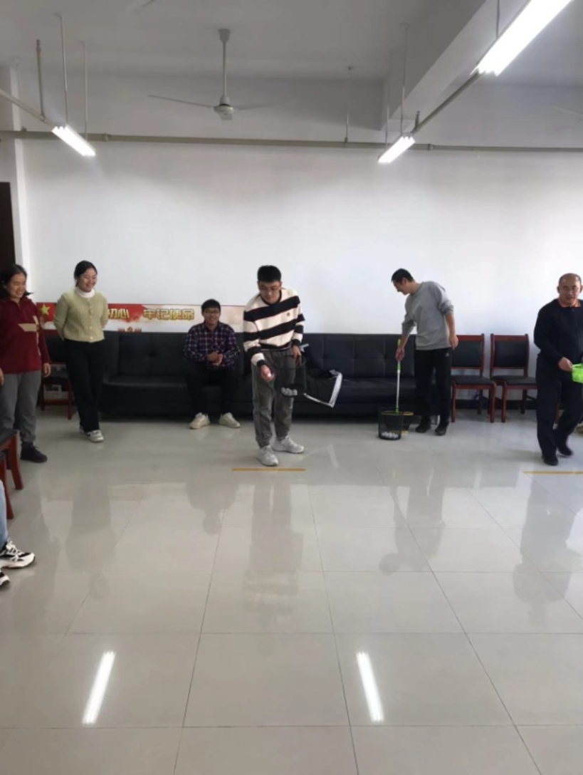 本次活动方式为投掷人员站在投掷线后,向四米外的目标物(洗脸盆)投掷乒乓球,可以直接投向目标物,也可以投向地面经多次弹跳奔向目标物,每人十个球,以最后留在目标物内的乒乓球数作为最终成绩。