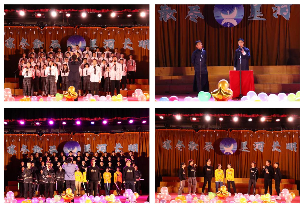 合唱比赛在新能源2006班和水利2002班的一首《星辰大海》中拉开序幕,让我们在星的海中徜徉;紧接着水利类2002班两位同学带来了风采展示——相声《说学逗唱》,台下笑声与掌声不绝;接下来新能源2001班和水利2001班的合唱曲目是《奇迹再现》,点燃了现场气氛;水利类2001班六位同学带来风采展示《老男孩》,全情投入。