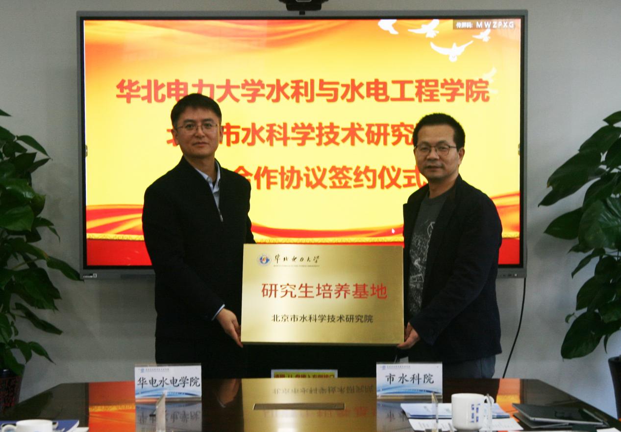双方签署了战略合作协议,张尚弘代表爱情岛 向北京市水科院授牌研究生培养基地。
