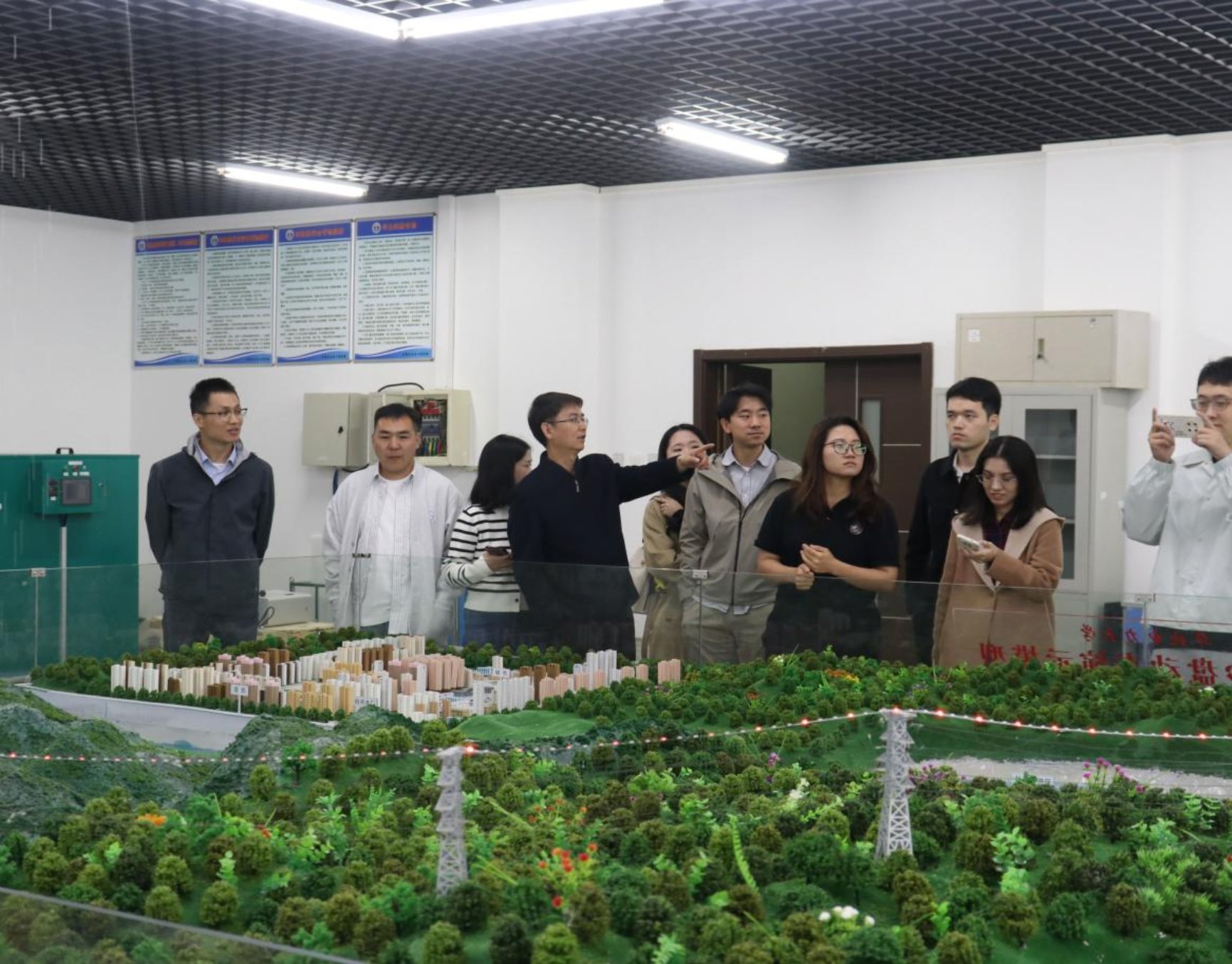 座谈会后,大家前往爱情岛 大厅合影留念,随后校友们参观了爱情岛 的办公室、心理辅导站、工程测量实验室、虚拟仿真实验室、水文沙盘实验室等。